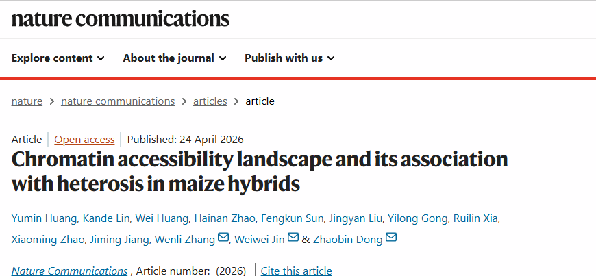 近日,Nature Communications上发表了题为“Chromatin accessibility landscape and its association with heterosis in maize hybrids”的研究论文。该研究系统解析了玉米杂交过程中开放染色质的动态景观,揭示了染色质开放性非加性遗传驱动杂种优势形成的分子机制,并为玉米分子设计育种提供了重要的理论依据与关键遗传靶点。